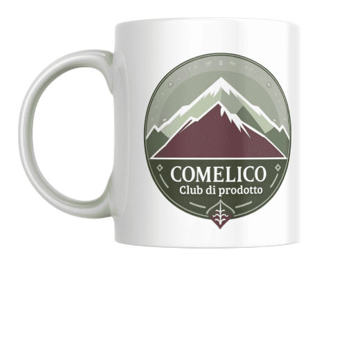 Tazza con il logo di Comelico Club fatta a mano dagli artigiani di Comelico